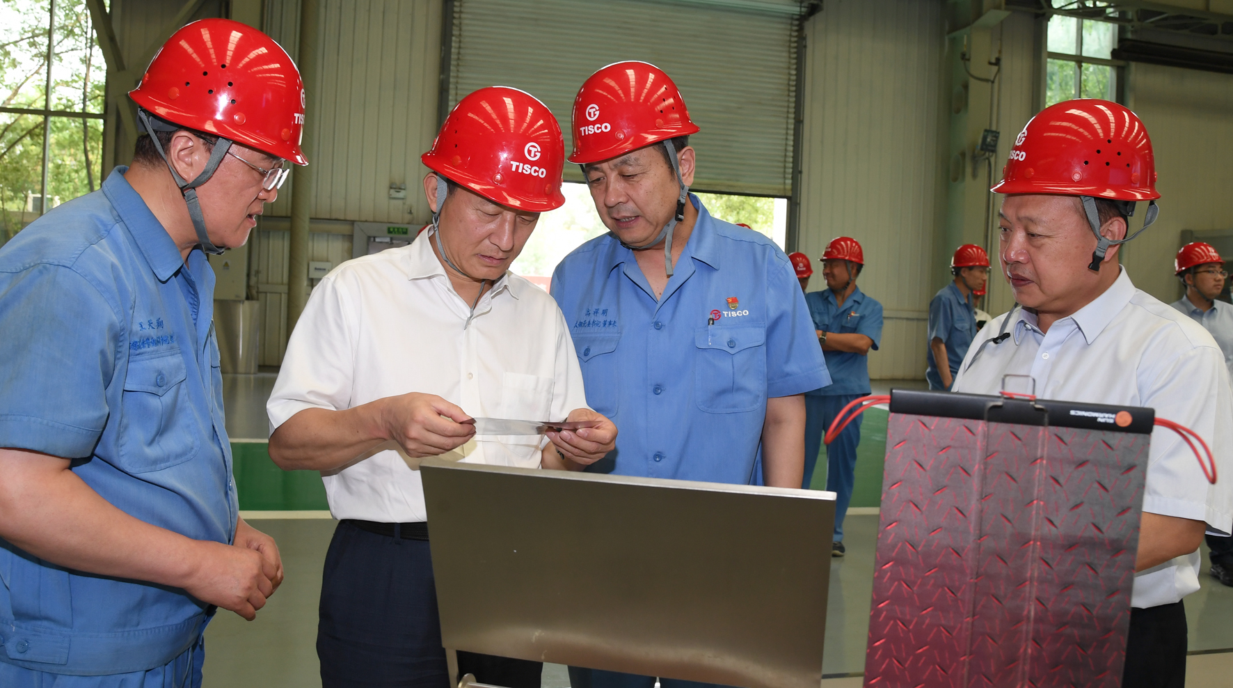 彭华岗旅行了太原钢铁厂史展览馆、碳纤维生产线和不锈钢细密带钢生产线,,,,,,,,详细相识企业生长历程、碳纤维和“手撕刚”生产等情形,,,,,,,,对企业科技立异领域取得的效果给予了充分一定。。。。。。