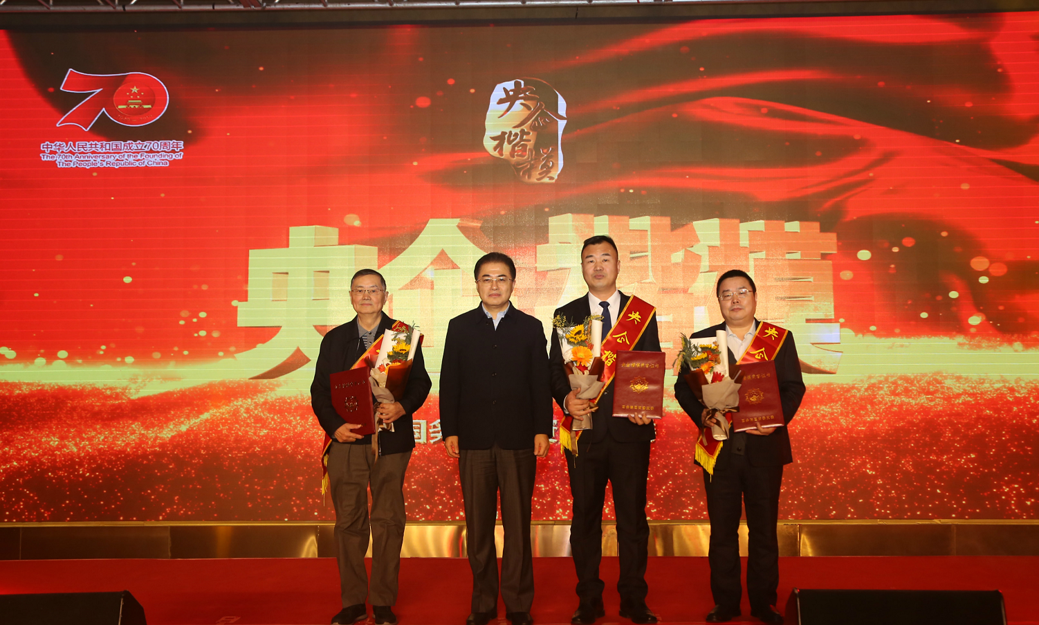 2019年12月31日,,,,,,,国资委党委在京举行2019年第三批“央企楷模”宣布暨年度总宣布运动,,,,,,,授予中国电信韦乐平、中交集团王明安、保利集团蒋迎春等3位同志“央企楷模”声誉称呼,,,,,,,向全社会宣布宣传2019年度第四届10位“央企楷模”先进事迹。。。。。。。。国资委副主任、党委委员翁杰明出席宣布会并会见全体“央企楷模”。。。。。。。。