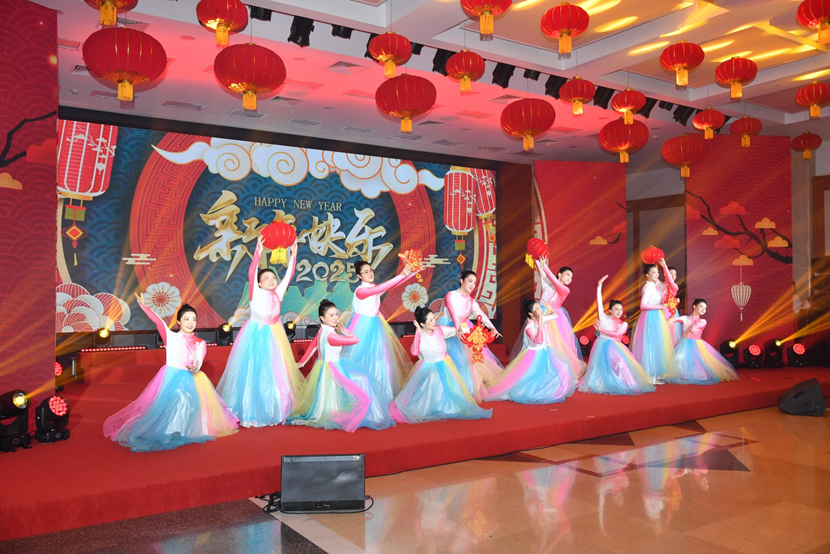 团拜会上欢声笑语回荡,,,,,,,干部职工自编自演的舞蹈、歌曲、情景剧、国风展示等节目精彩纷呈,,,,,,,充分展现了宽大干部职工为国资央企事业拼搏贡献的精神风貌,,,,,,,赢得了阵阵热烈掌声,,,,,,,会场充满了欢喜、祥和、喜庆的节日气氛。。。。。。。最后,,,,,,,各人齐声高唱《中国 中国 鲜红的太阳永不落》,,,,,,,将气氛推向热潮。。。。。。。