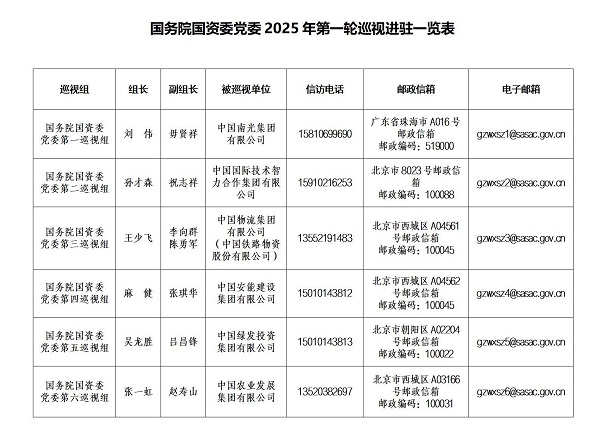 ƾ֤¹úÎñÔº¹ú×Êίµ³Î¯ºÍѲÊÓÊÂÇéÏòµ¼Ð¡×é°²ÅŰ²ÅÅ£¬£¬£¬£¬£¬£¬£¬£¬×èÖ¹2025Äê5ÔÂ20ÈÕ£¬£¬£¬£¬£¬£¬£¬£¬¹úÎñÔº¹ú×Êίµ³Î¯2025ÄêµÚÒ»ÂÖѲÊÓÍê³É½ø×¤ÊÂÇé¡£¡£¡£¡£¡£¹úÎñÔº¹ú×Êίµ³Î¯6¸öѲÊÓ×齫¶ÔÖйú¹ú¼ÊÊÖÒÕÖÇÁ¦ºÏ×÷¼¯ÍÅÓÐÏÞ¹«Ë¾¡¢ÖйúũҵÉú³¤¼¯ÍÅÓÐÏÞ¹«Ë¾¡¢Öйú°²Äܽ¨É輯ÍÅÓÐÏÞ¹«Ë¾¡¢ÖйúÄϹ⼯ÍÅÓÐÏÞ¹«Ë¾¡¢ÖйúÎïÁ÷¼¯ÍÅÓÐÏÞ¹«Ë¾¡¢ÖйúÂÌ·¢Í¶×ʼ¯ÍÅÓÐÏÞ¹«Ë¾µÈ6¼ÒÆóÒµµ³Î¯¿ªÕ¹Í¨ÀýѲÊÓ£¬£¬£¬£¬£¬£¬£¬£¬¶ÔÖйúÎïÁ÷¼¯ÍÅÓÐÏÞ¹«Ë¾ËùÊôÖйúÌú·Îï×ʹɷÝÓÐÏÞ¹«Ë¾µ³Î¯¿ªÕ¹ÌἶѲÊÓ¡£¡£¡£¡£¡£