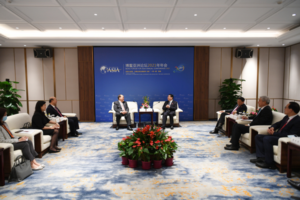 4月20日,,,,,,国务院国资委党委书记、主任郝鹏在出席博鳌亚洲论坛2021年年会时代会见了澳门特殊行政区行政主座贺一诚。。。。。双方就进一步推动中央企业助力澳门经济适度多元生长,,,,,,加入粤澳(横琴)深度合作区、粤港澳大湾区建设等举行了深入交流。。。。。外交部驻澳门特殊行政区特派员公署特派员刘显法,,,,,,国务院国资委党委委员、秘书长彭华岗加入会见。。。。。