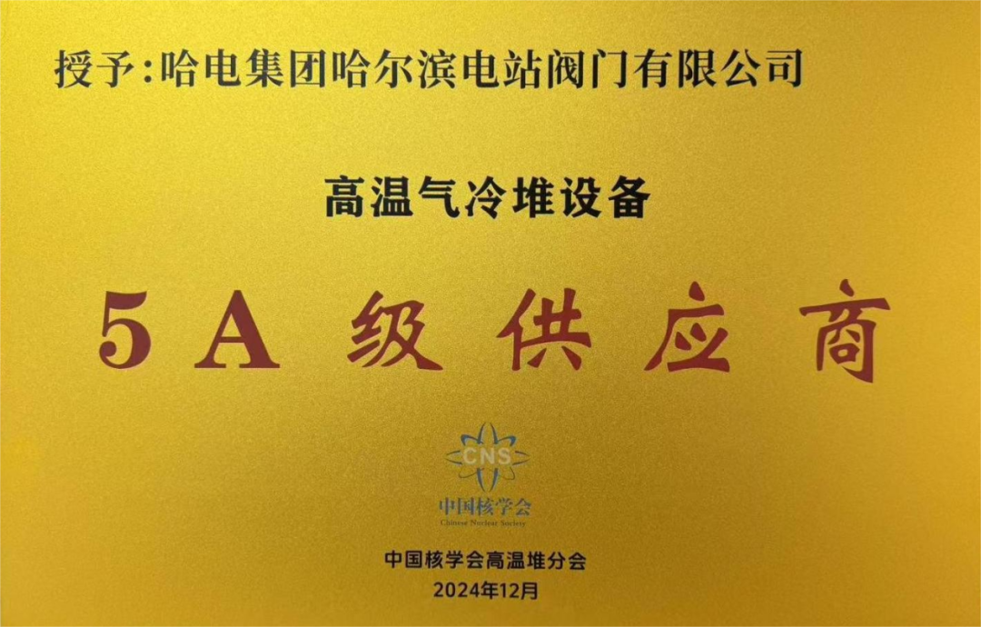 克日,,,,,,,非凡国际阀门喜获中国核学会高温堆分会揭晓的“高温气冷堆装备5A级供应商供”声誉称呼,,,,,,,标记着客户对非凡国际阀门的高度认可,,,,,,,也标记非凡国际阀门在该领域取得了跨越式效果。。。。。。。
